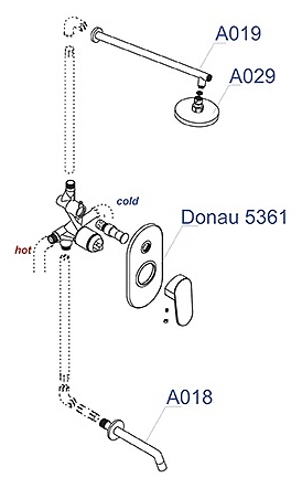 Встраиваемый комплект для ванны Wasserkraft Donau 5300 A13029 хром, никель