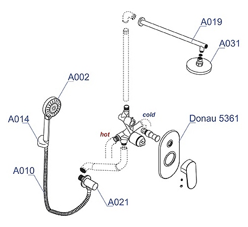 Встраиваемый комплект для душа Wasserkraft Donau 5300 A14031 хром, никель