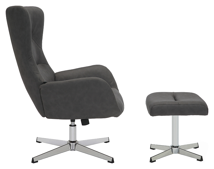 Кресло-реклайнер Everprof Apple предназначено для комфортного размещения пользователя в процессе работы и отдыха в кабинетах и офисах различных учреждений, а также домашних условиях. Модель состоит из кресла и пуфика для ног. Кресло оснащено мягкими сиденьем, подлокотниками и спинкой с плавно изогнутым немонолитным каркасом, опорной стойкой на устойчивой крестовине и рычагом регулировки, пуфик – мягкой рабочей поверхностью прямоугольной формы и опорной стойкой на крестовине. Обивка выполнена из плотной ткани темно-серого цвета, опорные стойки – из металла, крестовины – из алюминия с серебристой поверхностью, наполнитель – из эластичного пенополиуретана. В комплект поставки входят защитный колпачок газового патрона, набор крепежа, инструкция по сборке и заводская упаковка. Особенности: