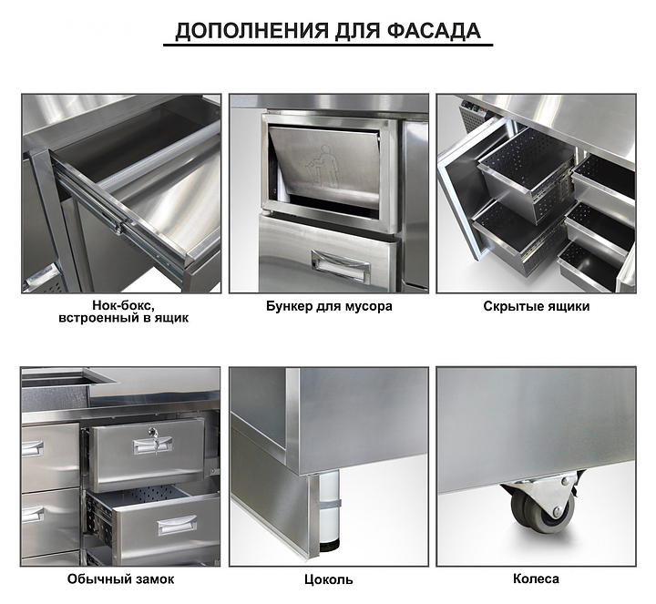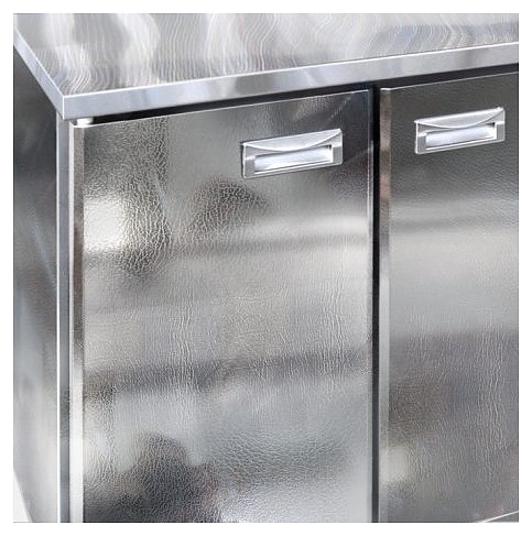Холодильный стол Finist СХСнпц-700-4 предназначен для хранения скоропортящихся полуфабрикатов из мяса, рыбы и других ингредиентов для приготовления пиццы на предприятиях общественного питания и торговли. Модель оснащена расположенным снизу агрегатным отсеком, столешницей, гастронормированной надстройкой с крышкой, 4 секциями и 4 дверями, устойчивыми ножками с подпятниками, кабелем питания с евровилкой и кнопочной панелью управления с цифровым дисплеем. Цельнозаливной корпус выполнен из высококачественной нержавеющей стали, задняя стенка - из оцинкованной стали. Особенности: