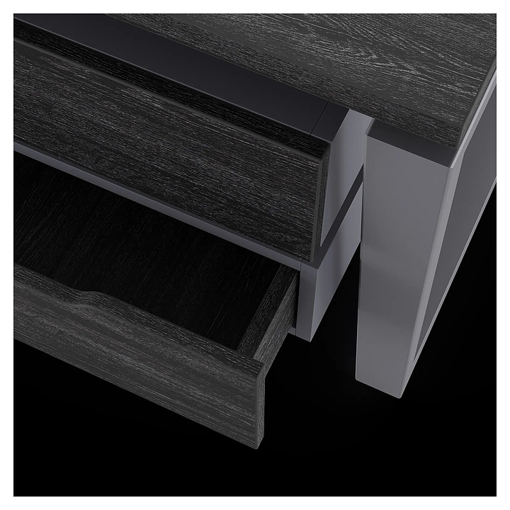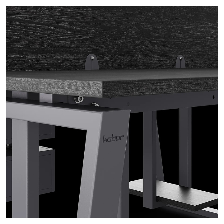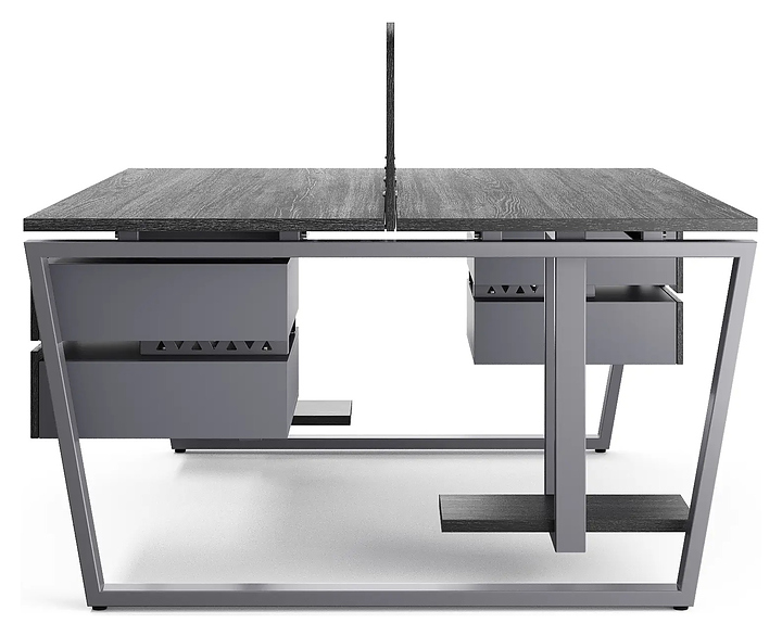 Офисный стол Кобор OTR/2-140/140 graphite/glazed на 2 рабочих места используется в офисных помещениях и кабинетах руководителей. Модель оснащена опорами в форме обратной трапеции. Каркас и опоры выполнены из металла, выкрашенного в цвет графит муар (RAL7024), столешница – из ламинированной древесно-стружечной плиты (ЛДСП) цвета черный дуб (H3178 ST37). Дополнительные характеристики: