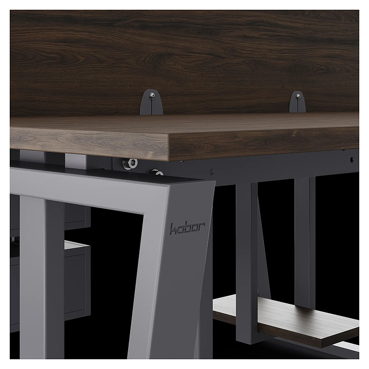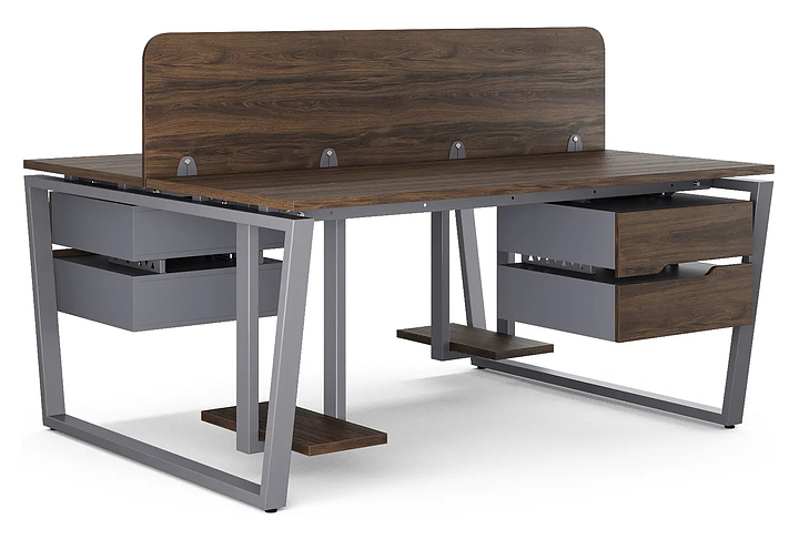 Офисный стол Кобор OTR/2-80/120 graphite/charlston на 2 рабочих места используется в офисных помещениях и кабинетах руководителей. Модель оснащена опорами в форме обратной трапеции. Каркас и опоры выполнены из металла, выкрашенного в цвет графит муар (RAL7024), столешница – из ламинированной древесно-стружечной плиты (ЛДСП) цвета дуб чарльстон (H3154 ST36). Дополнительные характеристики: