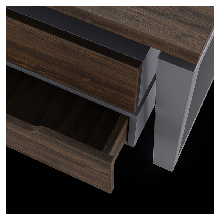 Офисный стол Кобор OTR/2-80/140 graphite/charlston на 2 рабочих места используется в офисных помещениях и кабинетах руководителей. Модель оснащена опорами в форме обратной трапеции. Каркас и опоры выполнены из металла, выкрашенного в цвет графит муар (RAL7024), столешница – из ламинированной древесно-стружечной плиты (ЛДСП) цвета дуб чарльстон (H3154 ST36). Дополнительные характеристики: