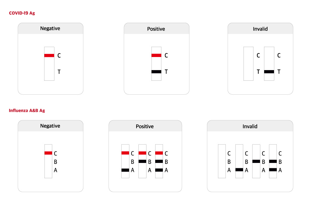 Набор экспресс-тестов RapiGEN BIOCREDIT COVIFLU AG DUO используется в специальных лабораториях и больницах, а также в домашних условиях для качественного обнаружения антигена SARS-CoV-2 и антигена вируса гриппа A&B в носоглотке человека. Набор реагентов предназначен для профессионального использования для помощи в предварительной диагностике инфекции COVID-19 и вируса гриппа A&B. В комплект поставки входит :