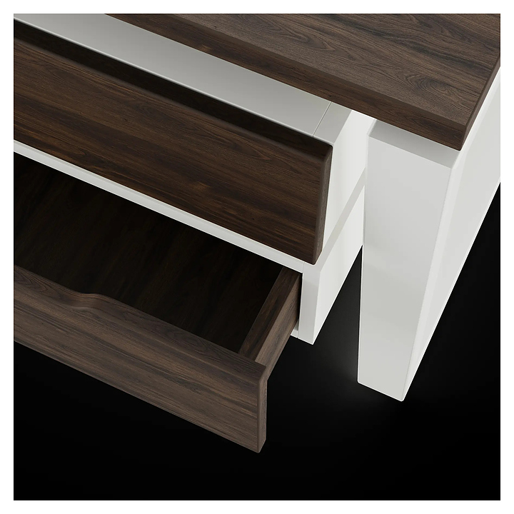 Офисный стол Кобор OTR/2-80/120 white/charlston на 2 рабочих места используется в офисных помещениях и кабинетах руководителей. Модель оснащена опорами в форме обратной трапеции. Каркас и опоры выполнены из металла, выкрашенного в цвет белый муар (RAL9016), столешница – из ламинированной древесно-стружечной плиты (ЛДСП) цвета дуб чарльстон (H3154 ST36). Дополнительные характеристики: