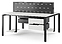 Офисный стол Кобор P/2-100/160 black/premium на 2 рабочих места используется в офисных помещениях и кабинетах руководителей. Модель оснащена П-образными опорами. Каркас и опоры выполнены из металла, выкрашенного в цвет черный муар (RAL9005), столешница – из ламинированной древесно-стружечной плиты (ЛДСП) цвета белый премиум (W1000 ST9). Дополнительные характеристики: