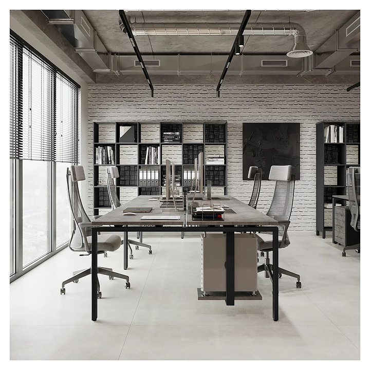 Офисный стол Кобор P/2-100/160 black/chicago на 2 рабочих места используется в офисных помещениях и кабинетах руководителей. Модель оснащена П-образными опорами. Каркас и опоры выполнены из металла, выкрашенного в цвет черный муар (RAL9005), столешница – из ламинированной древесно-стружечной плиты (ЛДСП) цвета бетон чикаго (F186 ST9). Дополнительные характеристики: