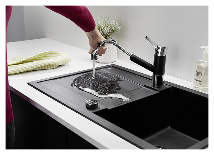 Прямоугольная мойка Blanco Metra 45 S изготовлена из композитного материала SILGRANIT, на 80% состоящего из крошек гранита. Инновационный материал обеспечивает гигиеничность и безопасность, а также легкость в уходе. Благодаря небольшим размерам она идеально впишется в пространство даже небольших кухонь. Гармонично сочетая в себе красоту прямых линий и функциональность, мойка станет достойным элементом кухонного интерьера. В глубокой и вместительной чаше можно мыть посуду больших размеров. Практичное крыло с дополнительным сливом расширяет рабочую поверхность. В комплект поставки входят вентиль-автомат 3½" и крепление. Дополнительные характеристики: