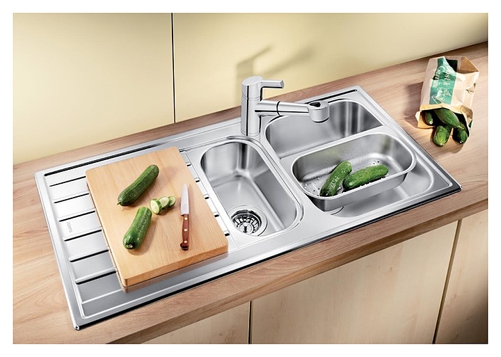 Мойка Blanco Livit 6 S позволяет максимально комфортно организовать рабочее пространство в небольших кухнях. Рядом с объемной и вместительной основной чашей расположена удобная дополнительная чаша, увеличивающая рабочее пространство. Оборачиваемая мойка позволяет выбрать наиболее оптимальный и удобный вариант монтажа, выполняемого врезным методом. Для более рационального использования рабочего пространства рекомендуется использовать многофункциональный коландер, устанавливаемый в основную или дополнительную чашу, и корзину для сушки. Дополнительные характеристики: