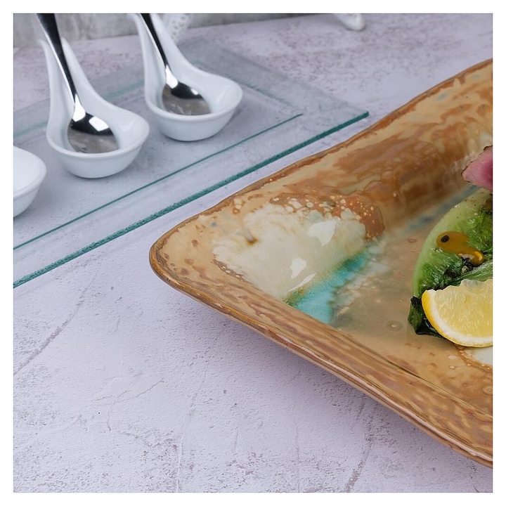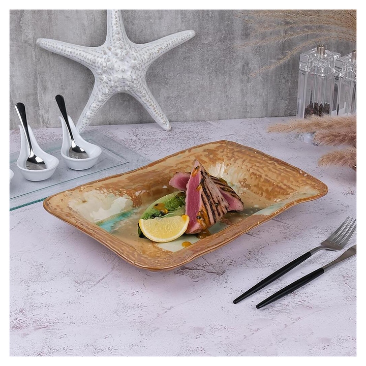 Блюдо сервировочное P.L. Proff Cuisine Light Brown Spots Sea Wave Frutti di Mare B240130531-2406A 600 мл 31х21,5 см h=4,8 см (керамика)