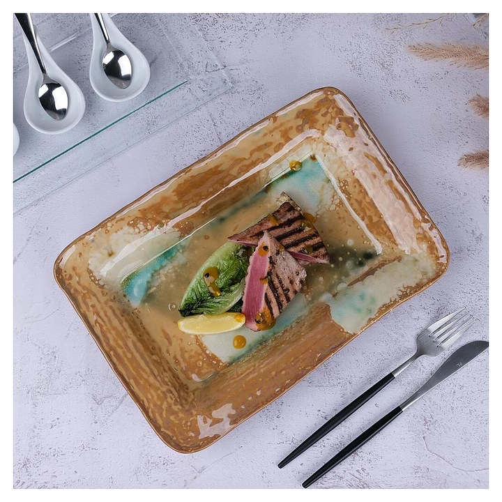 Блюдо P.L. Proff Cuisine Light Brown Spots Sea Wave Frutti di Mare B240130531-2406A используется в барах, ресторанах, на других предприятиях общественного питания и в домашних условиях для подачи блюд из морепродуктов. Коллекция отличается стильным биофильным дизайном. Модель прямоугольной формы выполнена из высококачественной керамики с покрытием реактивной глазурью в гармоничном сочетании светло-коричневых и голубых тонов. Цена указана за 1 шт. Внимание! Информация о товарах, размещенная на сайте, не является публичной офертой, определяемой положениями Части 2 Статьи 437 Гражданского кодекса Российской Федерации. Производители вправе вносить изменения в технические характеристики, внешний вид и комплектацию товаров без предварительного уведомления. Уточняйте характеристики у наших менеджеров перед оформлением заказа. |