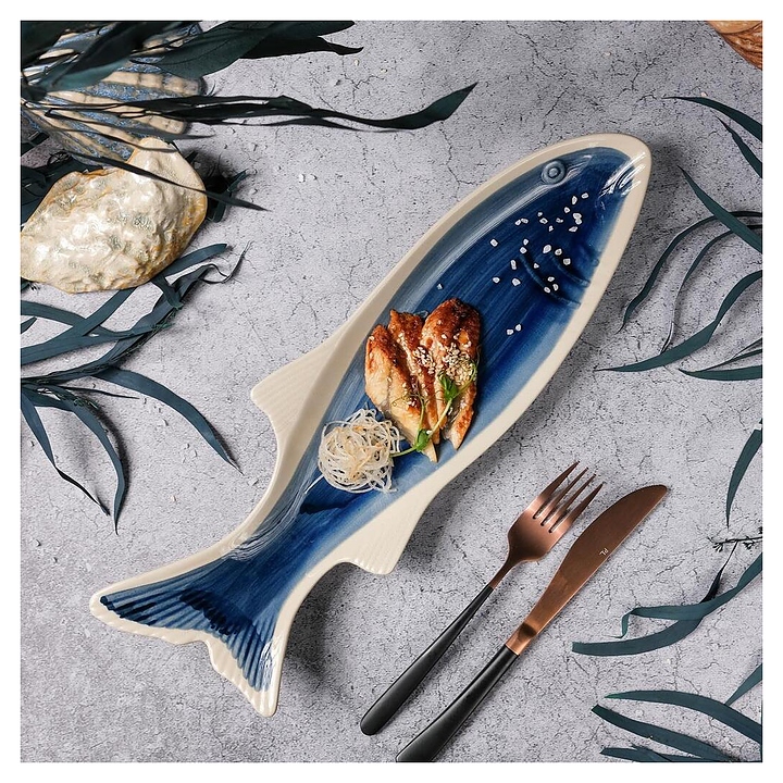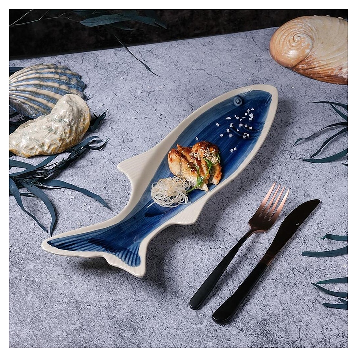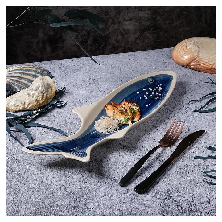 Блюдо сервировочное P.L. Proff Cuisine Fish Northern Blue Frutti di Mare QB23166001 42х13,3 см h=4,5 (керамика)