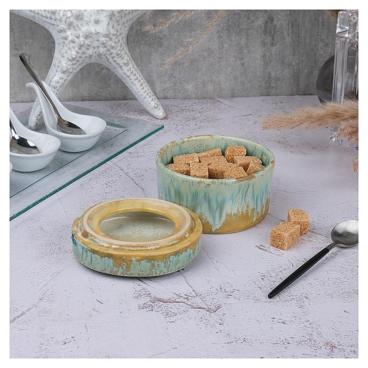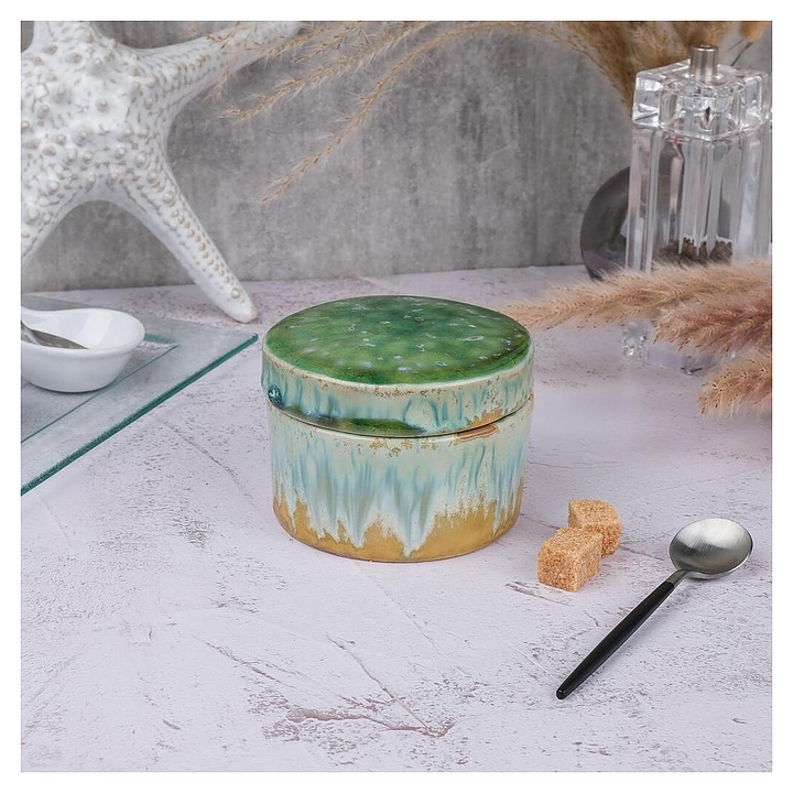 Емкость для подачи P.L. Proff Cuisine Green Malachite Box Frutti di Mare B240059410-2401C 210 мл d=10 см h=5,2/3,2 см с крышкой (керамика)