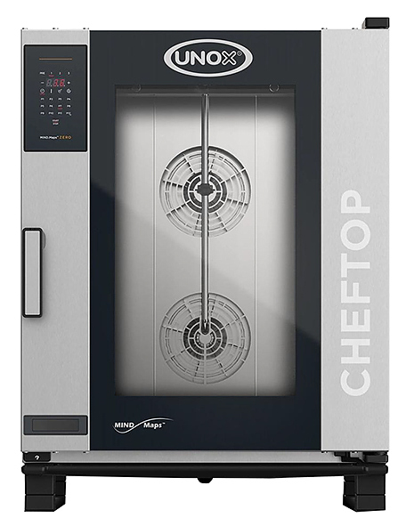 Пароконвектомат UNOX XEVC-1011-EZLM серии CHEFTOP MIND.Maps™ COUNTERTOP ZERO предназначен для стандартных процессов приготовления различных блюд на предприятиях общественного питания. Модель оснащена сенсорной панелью управления ZERO с 7-сегментным экраном, петлями справа, левой дверью и LED подсветкой, встроенной в дверь. Камера выполнена из нержавеющей стали AISI 304 с закругленными углами, окно двери - из двойного стекла. Особенности:
