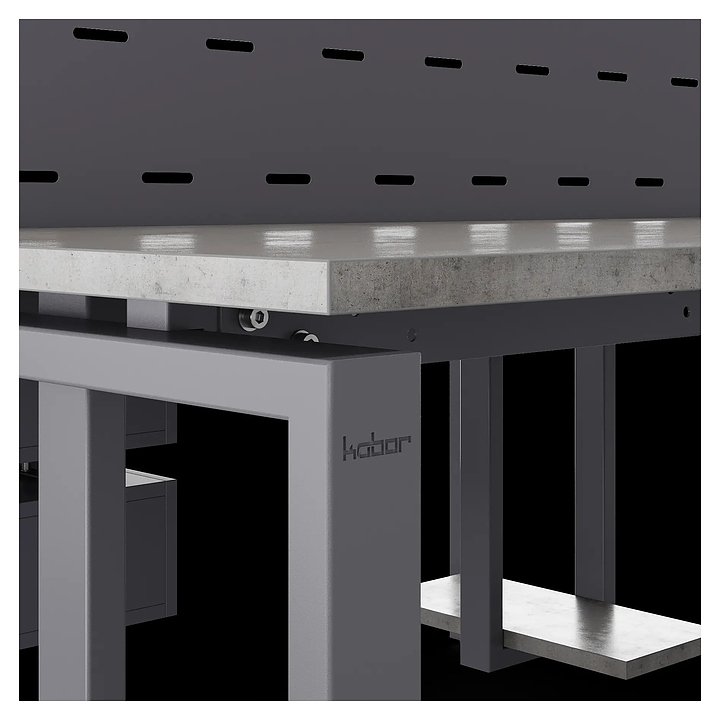 Офисный стол Кобор P/2-100/140 graphite/chicago на 2 рабочих места используется в офисных помещениях и кабинетах руководителей. Модель оснащена П-образными опорами. Каркас и опоры выполнены из металла, выкрашенного в цвет графит муар (RAL7024), столешница – из ламинированной древесно-стружечной плиты (ЛДСП) цвета бетон чикаго (F186 ST9). Дополнительные характеристики: