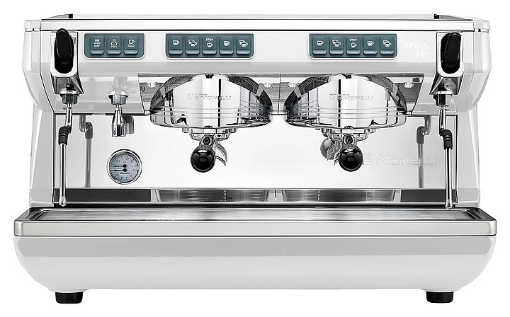 Автоматическая кофемашина Nuova Simonelli Appia Life 2gr V 220V используется в кофейнях, барах, ресторанах и на других предприятиях общественного питания и торговли для приготовления эспрессо и различных кофейных напитков на его основе. Модель оснащена 2 высокими термокомпенсированными рожковыми кофейными группами, 2 трубками подачи пара, соплом подачи горячей воды, персональными панелями для каждой группы с нажимными клавишами и светодиодными индикаторами. Фронтальная, задняя и верхняя панели корпуса, сопла, трубки подачи и решетка подставки выполнены из высококачественной нержавеющей стали, бойлер – из меди, боковые панели и основание корпуса – из ударопрочного АБС-пластика белого цвета. Комплектация: