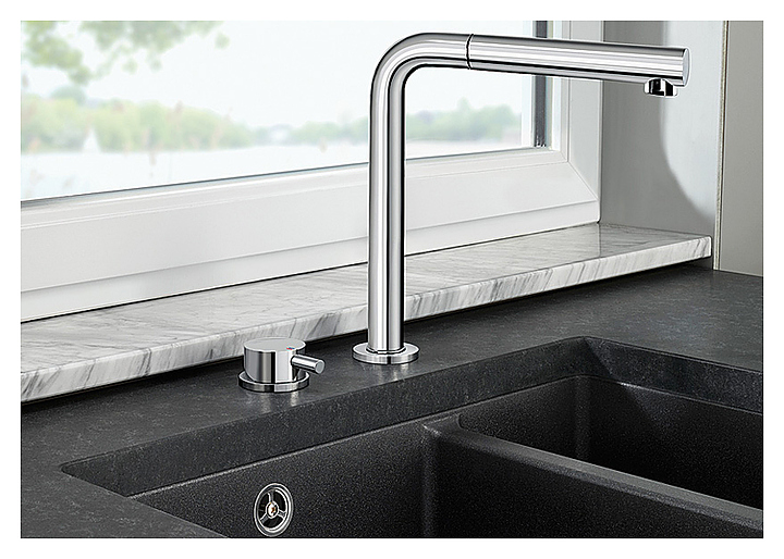 Благодаря эргономичности и функциональности выдвижной смеситель Blanco Periscope-S-F II станет идеальным выбором для установки около окна. Выполненный в минималистском стиле, он отлично впишется в современный интерьер. Модель можно комбинировать с мойками, устанавливаемыми под столешницу. Выдвижной вращающийся излив существенно расширяет рабочую зону и увеличивает функциональность, сохраняя отличную работоспособность в любом положении. Высокий излив позволяет легко наполнять водой большие кастрюли или вазы. Особенности:
