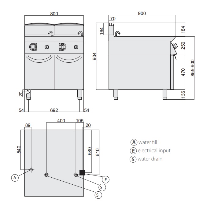Напольная электрическая макароноварка Giorik Unika 900 CPE946 используется на предприятиях общественного питания и торговли для приготовления макаронных изделий. Модель оснащена 2 ваннами с фронтальной рабочей поверхностью с перфорированным переливом, расположенной на наклонной фронтальной стенке электромеханической панелью управления и техническим отделением с распашными дверьми. Внешняя облицовка корпуса выполнена из высококачественной нержавеющей стали. Корзины и крышки не входят в комплект поставки и приобретаются отдельно. Особенности: