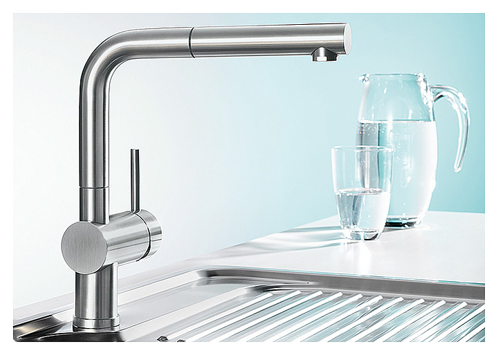 Практичный однорычажый смеситель Blanco Linus-S выполнен в минималистском стиле. Высокое расположение излива, сделанного из качественной нержавеющей стали, позволяет набирать воду в большие кастрюли или кувшины. По внешнему виду подходит к мойкам из нержавеющей стали. Особенности: