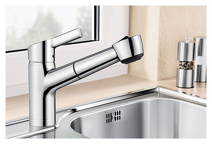 Однорычажный смеситель Blanco Elipso-S-F II, выполненный в классическом стиле, подходит для установки перед окном. Имеется два варианта струи, излив выдвижной и регулируемый. Благодаря встроенному запатентованному рассекателю предотвращается отложение налета от воды. Характеристики: