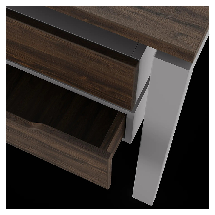 Офисный стол Кобор P/2-120/120 aluminum/charlston используется в офисных помещениях и кабинетах руководителей. Модель оснащена П-образными опорами. Каркас выполнен из металла, выкрашенного в цвет алюминиевый металлик (RAL9006), столешница – из ламинированной древесно-стружечной плиты (ЛДСП) цвета дуб чарльстон (H3154 ST36). Дополнительные характеристики:
