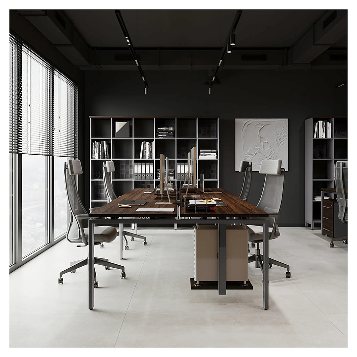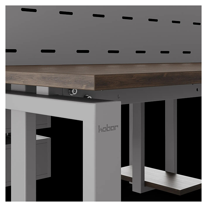 Офисный стол Кобор P/2-100/140 aluminum/charlston используется в офисных помещениях и кабинетах руководителей. Модель оснащена П-образными опорами. Каркас выполнен из металла, выкрашенного в цвет алюминиевый металлик (RAL9006), столешница – из ламинированной древесно-стружечной плиты (ЛДСП) цвета дуб чарльстон (H3154 ST36). Дополнительные характеристики:
