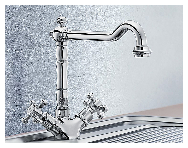 Классический двухрычажный смеситель Blanco Tera идеально сочетает в себе современную функциональность и традиционность форм. Он подходит для комбинирования с мойками из нержавеющей стали и красиво впишется в кухонный интерьер, выполненный в стиле кантри. Вращающийся излив с расширенной зоной действия удобно использовать во время работы. Сертификат DVGW подтверждает соответствие всем требованиям гигиеничности и безопасности использования. Несложная установка выполняется с помощью гибких шлангов, а специальная стабилизирующая пластина увеличивает устойчивость смесителя. Характеристики: