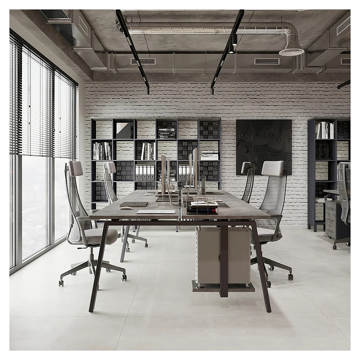 Офисный стол Кобор Стол A/2-80/120 graphite/chicago используется в офисных помещениях и кабинетах руководителей. Модель оснащена А-образными опорами. Каркас выполнен из металла, выкрашенного в цвет графит муар (RAL7024) , столешница – из ламинированной древесно-стружечной плиты (ЛДСП) цвета бетон чикаго (F186 ST9). Дополнительные характеристики: