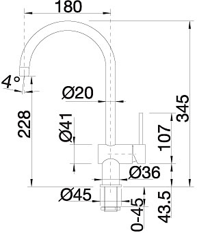 • Высота излива: 228 мм