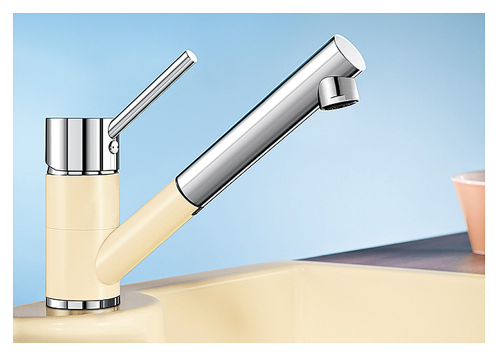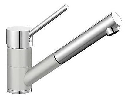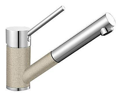 Однорычажный смеситель Blanco Antas-S Silgranit выполнен в комбинации хромированной поверхности с натуральным гранитным материалом Silgranit. Прямые линии современного дизайна гармонично сочетаются с цилиндрическими формами. Выдвижной поворотный излив расширяет зону действия, увеличивая при этом функциональность рабочей зоны. Смеситель изготавливается в соответствии с современными требованиями безопасности и гигиеничности, что подтверждает сертификат DVGW. Благодаря своим компактным размерам модель прекрасно подходит для моек небольшого размера. Особенности: