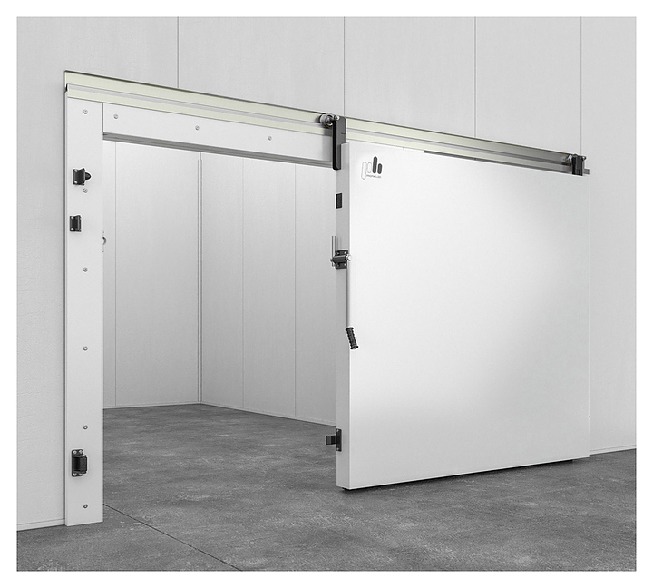 Откатная дверь ПРОФХОЛОД ОД ПХ 2000 2600 150 применяется для ограждения и теплоизоляции дверных проемов средне- и низкотемпературных камер любого объема, холодильных складов, терминалов и помещений с монорельсом. Модель устанавливается в местах прохода людей, провоза ручных тележек с грузом, механизированных погрузчиков и для стабилизации климатического режима в помещениях. Дверное полотно выполнено из оцинкованного стального листа с полиэфирной краской, рама - из листовой холоднокатаной стали с порошковой эмалевой краской, направляющие профили - из анодированного алюминия, уплотнители по периметру двери - из пористой резины EPDM с нанесенным слоем липкого армированного клея, защищенного протекторной бумагой, ролики - из пластика, ручки - целиком из оцинкованной стали с покрытием порошковой краской, теплоизоляционный наполнитель - из жесткого пенополиуретана. Особенности: