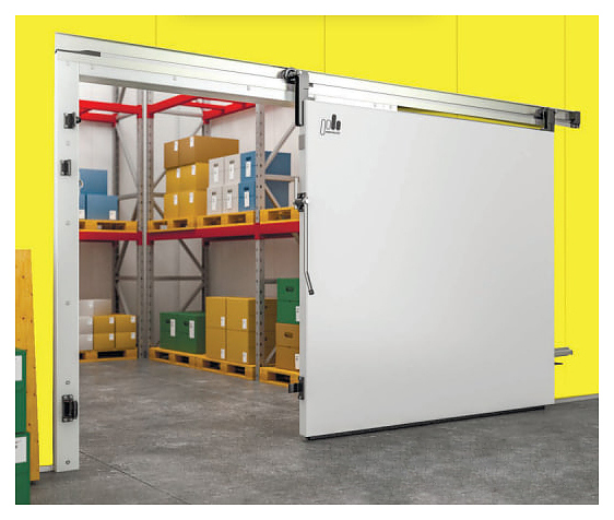 Откатная дверь ПРОФХОЛОД ОД ПХ 2400 2600 150 применяется для ограждения и теплоизоляции дверных проемов средне- и низкотемпературных камер любого объема, холодильных складов, терминалов и помещений с монорельсом. Модель устанавливается в местах прохода людей, провоза ручных тележек с грузом, механизированных погрузчиков и для стабилизации климатического режима в помещениях. Дверное полотно выполнено из оцинкованного стального листа с полиэфирной краской, рама - из листовой холоднокатаной стали с порошковой эмалевой краской, направляющие профили - из анодированного алюминия, уплотнители по периметру двери - из пористой резины EPDM с нанесенным слоем липкого армированного клея, защищенного протекторной бумагой, ролики - из пластика, ручки - целиком из оцинкованной стали с покрытием порошковой краской, теплоизоляционный наполнитель - из жесткого пенополиуретана. Особенности: