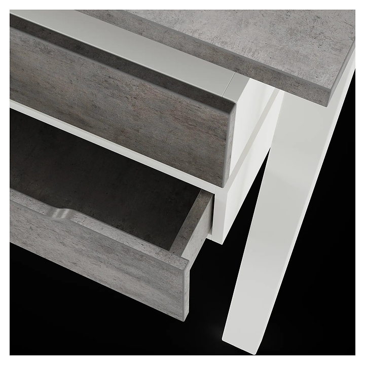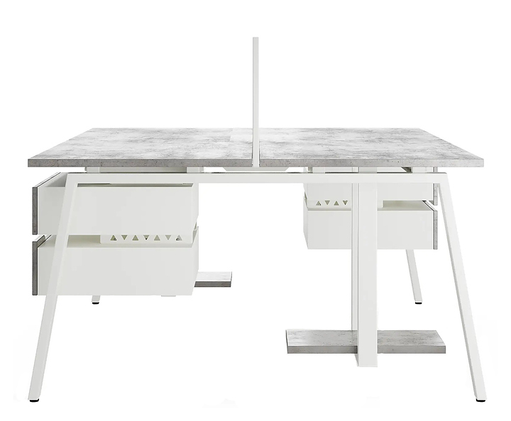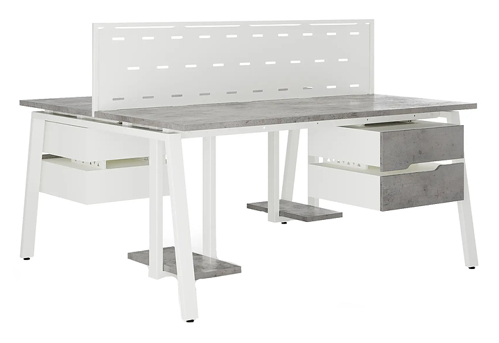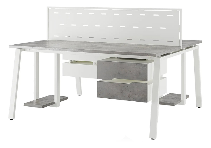 Офисный стол Кобор A/2-80/120 white/chicago используется в офисных помещениях и кабинетах руководителей. Модель оснащена А-образными опорами. Каркас выполнен из металла, выкрашенного в цвет белый муар (RAL9016), столешница – из ламинированной древесно-стружечной плиты (ЛДСП) цвета бетон чикаго (F186 ST9). Дополнительные характеристики: