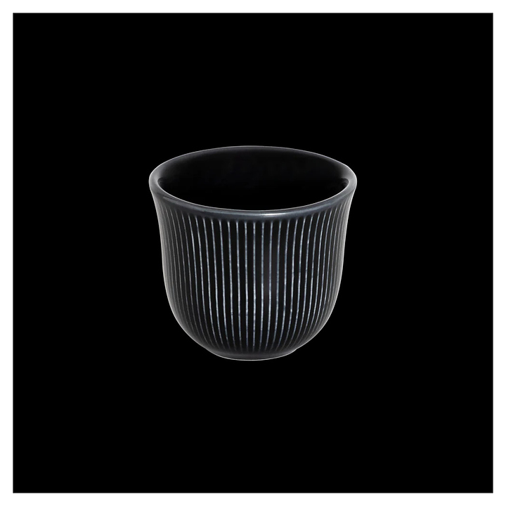 Чашка Loveramics Brewers Embossed Tasting Cup Espresso C099-94BBK 80 мл для кофе, подходит для эспрессо. Это новая серия рельефных термостойких чашек из фарфора создана для тех, кто любит яркие цвета и хороший кофе. Ее компактный объем (80 мл) идеально подходит для дегустации кофе, позволяя сосредоточиться на тонкостях вкуса и аромата. Отсутствие ручки придаёт эстетическую изысканность и способствует более тесному контакту с напитком. Доступны в разных размерах: для эспрессо 80 мл, флет-уайт на 150 мл, латте/капучино на 250 мл. Изготовлена из прочного и долговечного фарфора, поверхность которого вручную покрывается глазурью, что придает каждому предмету индивидуальность. Особенности:
