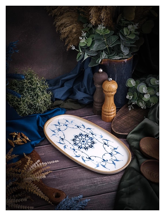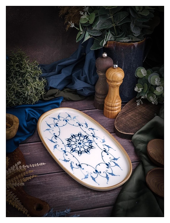 Блюдо Porland Pioli Reflect 11AP30 PL используется для подачи различных закусок и блюд в ресторанах, кафе, на других предприятиях общественного питания и в домашних условиях. Коллекция вдохновлена безмятежностью и очарованием моря и декорирована тонкими узорными орнаментами в синих тонах. Емкость овальной формы оснащена невысоким бортом. Изделие выполнено из высококачественного белого фарфора. Особенности: