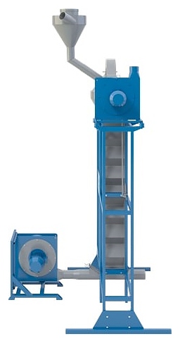 Воздушный разделитель ПЗО PZO-VR500 используется на промышленных предприятиях, в пунктах приема, сортировки и переработки отходов для отделения мелких частиц мусора, волокон и этикеток от основного сырья такого как тара из полиэтиленфталата (ПЭТ). Оборудование представляет собой вертикальный воздушный канал с установленным вытяжным вентилятором, благодаря направленному потоку воздуха мелкие включения перемещаются наверх и удаляются, а основное сырье под действием силы тяжести падает вниз для дальнейшей транспортировки. Корпус выполнен из металла с антикоррозийным покрытием порошковой краской. В комплект поставки входят инструкция по эксплуатации и гарантийный талон. Дополнительные характеристики: