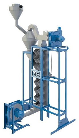 Воздушный разделитель ПЗО PZO-VR1000 используется на промышленных предприятиях, в пунктах приема, сортировки и переработки отходов для отделения мелких частиц мусора, волокон и этикеток от основного сырья такого как тара из полиэтиленфталата (ПЭТ). Оборудование представляет собой вертикальный воздушный канал с установленным вытяжным вентилятором, благодаря направленному потоку воздуха мелкие включения перемещаются наверх и удаляются, а основное сырье под действием силы тяжести падает вниз для дальнейшей транспортировки. Корпус выполнен из металла с антикоррозийным покрытием порошковой краской. В комплект поставки входят инструкция по эксплуатации и гарантийный талон. Дополнительные характеристики:
