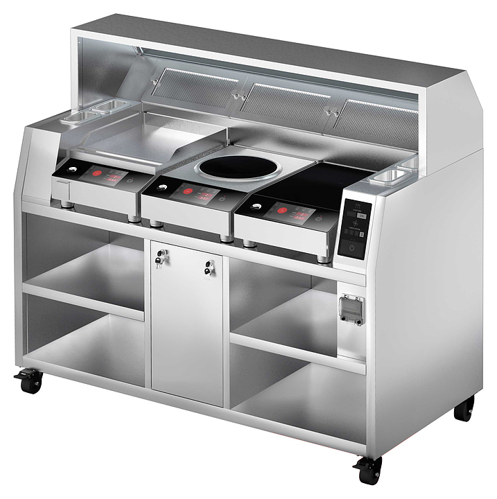 Кулинарная станция INDOKOR IN-3 предназначена для приготовления большого ассортимента блюд в гостиничном и ресторанном бизнесе, на предприятиях пищевой промышленности и общественного питания. Модель оснащена 3-уровневой вытяжкой, 3 полками для хранения инвентаря, светодиодной системой освещения и колесами для быстрого перемещения. Станция подходит для работы на 3 электроплитах одновременно, что экономит пространство. Корпус выполнен из нержавеющей стали AISI 201, фильтр для масла - из металла, фильтр для поглощения влаги и предотвращения конденсата - из цеолита. Внимание! Станция поставляется без оборудования. Особенности: