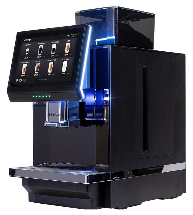 Кофемашина Jetinno JL36A предназначена для приготовления эспрессо, капучино и других кофейных напитков в кофейнях, барах, ресторанах, офисах и отелях. Модель оснащена высококонтрастным емкостным сенсорным экраном 10'' с широким углом обзора и хорошим откликом и 3-х цветной контурной амбиент-подсветкой дисплея. Плоские жернова кофемолки выполнены из нержавеющей стали. Особенности: