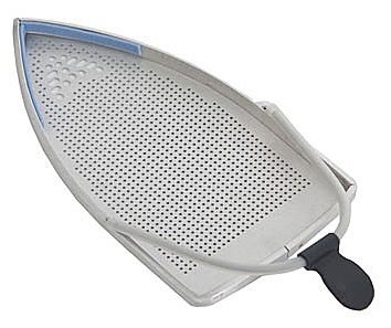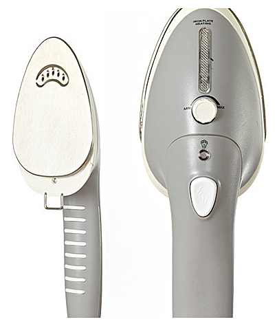 Паровой утюжок изготовлен из нержавеющей стали, которая не окисляется и проводит пар быстрее, чем обычная металлическая насадка. Утюжок имеет треугольную форму, похожую на форму обычного утюга. Эта форма утюжка делает более удобным отпаривание труднодоступных мест (например, полочка с пуговицами) Так же на паровом утюжке есть терморегулятор и кнопка подачи пара.