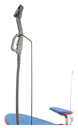 В гладильной системе MIE Eccellente есть дополнительный паровой шланг с паровым утюжком для вертикального отпаривания одежды. Не нужно использовать отдельно утюг и отдельно отпариватель для одежды. Вещи, которые невозможно отгладить на гладильной доске утюгом, можно отпарить в вертикальном положении отпаривателем.