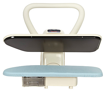 Паровой гладильный пресс MIE ROMEO IV WHITE - это новинка торговой марки MIE в области паровой гладильной техники. Паровой пресс MIE ROMEO IV имеет встроенный генератор пара. Гладильная поверхность пресса в несколько раз больше поверхности утюга, автоматическое давление прессования около 50 кг, за одну минуту пресс MIE ROMEO IV вырабатывает 90 гр пара, диапазон температур 60-220 градусов - все это дает возможность гладить очень быстро и качественно, не прилагая при этом больших физических усилий. Пресс позволяет гладить стоя и сидя без лишней нагрузки на ноги, руки и спину. Паровой пресс MIE ROMEO IV без труда разгладит сложенные в несколько слоев прямые вещи - скатерти, полотенца, постельное белье. Рубашки, брюки, футболки и прочие вещи выкладываются на платформе пресса и отглаживаются в 2-3 приема. Пар в прессе MIE ROMEO IV подается из нижней платформы, это является конструктивной особенностью данной модели. Гладильная поверхность пресса MIE ROMEO IV подогревается в процессе работы, тем самым обеспечивая наилучшее проникновение пара и его равномерное распределение. Тефлоновое покрытие верхней гладильной платформы защищает ткань от повреждений высокими температурами и делает процесс глажения бережным, что очень важно при работе с деликатными тканями: шелк, трикотаж, вискоза. Паровой пресс MIE ROMEO IV имеет функцию «СИЛЬНЫЙ ПАР», которая осуществляет процесс усиленной подачи пара. Нажимая кнопку «BOOSTER» на корпусе пресса, Вы можете усилить пароотдачу до 120 г/мин. Это удобно при глажении нескольких слоев текстиля, при работе с «трудными» тканями: льном, джинсовыми тканями и др. Резервуар для воды в прессе MIE ROMEO IV довольно вместительный - 0,8 л, он расположен под опорной поверхностью пресса и легко выдвигается для дозалива воды. Таким образом, пополнить резервуар водой можно в процессе работы, не отключая пресс. MIE ROMEO IV имеет встроенный микроконтроллер температуры, защищающий изделия от нежелательного перегрева. После закрытия пресса через некоторое время раздается звуковой сигнал, это означает, что разглаживание закончено, и можно открыть пресс. Если включенный пресс не открывается более 10 секунд, то нагревание автоматически прекращается. При открывании пресса нагревание возобновляется. Паровой пресс MIE ROMEO IV оснащен антиминеральным картриджем, который представляет собой фильтр для воды, и системой электронного контроля жесткости воды (ЕМС). Система ЕМС устраняет риск образования накипи в генераторе пара и отслеживает уровень минеральных солей в очищенной воде. Широкий угол открывания гладильной поверхности пресса MIE ROMEO IV позволяет без труда размещать на нем крупные вещи, складывать одежду после глажения без риска обжечься. Тип управления работой пресса – механический. Путем вращения регулятора на передней панели пресса можно выбрать необходимый температурный режим в зависимости от типа рагзлаживаемой ткани. В комплект парового пресса MIE ROMEO IV входят следующие аксессуары: