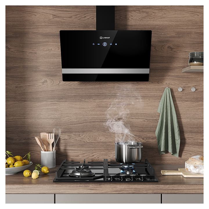 Пристенная кухонная вытяжка Libhof LV-4060 black-silver предназначена для очистки воздуха от продуктов горения, копоти и запахов в процессе приготовления пищи путем принудительной вентиляции в домашних условиях. Модель оснащена вентилятором с электродвигателем, наклонной фасадной панелью, 2 круглыми светодиодными светильниками, кабелем питания с вилкой, панелью управления с сенсорными клавишами и цифровым дисплеем индикации. Корпус выполнен из высококачественной стали с термостойким покрытием эмалью черного цвета, наклонная панель прямоугольной формы – из черного стекла с декоративной горизонтальной металлической вставкой серебристого оттенка, жироулавливающий фильтр – из алюминия. В комплект поставки входят набор монтажных креплений, 2-лепестковый антивозвратный клапан, шаблон для монтажа, инструкция по эксплуатации, гарантийный талон и заводская упаковка. Особенности: