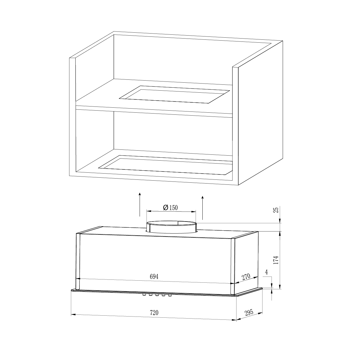 Встраиваемая кухонная вытяжка Libhof LB-0872 black предназначена для очистки воздуха от продуктов горения, копоти и запахов в процессе приготовления пищи путем принудительной вентиляции в домашних условиях. Модель оснащена вентилятором с электродвигателем, прямоугольным 2 светодиодными светильниками, кабелем питания с вилкой и панелью управления с нажимными клавишами. Корпус прямоугольно ориентированной формы выполнен из высококачественной стали с термостойким покрытием эмалью черного цвета, жироулавливающий фильтр – из алюминия, фурнитура с черной поверхностью. В комплект поставки входят набор монтажных креплений, 2-лепестковый антивозвратный клапан, шаблон для монтажа, инструкция по эксплуатации, гарантийный талон и заводская упаковка. Особенности: