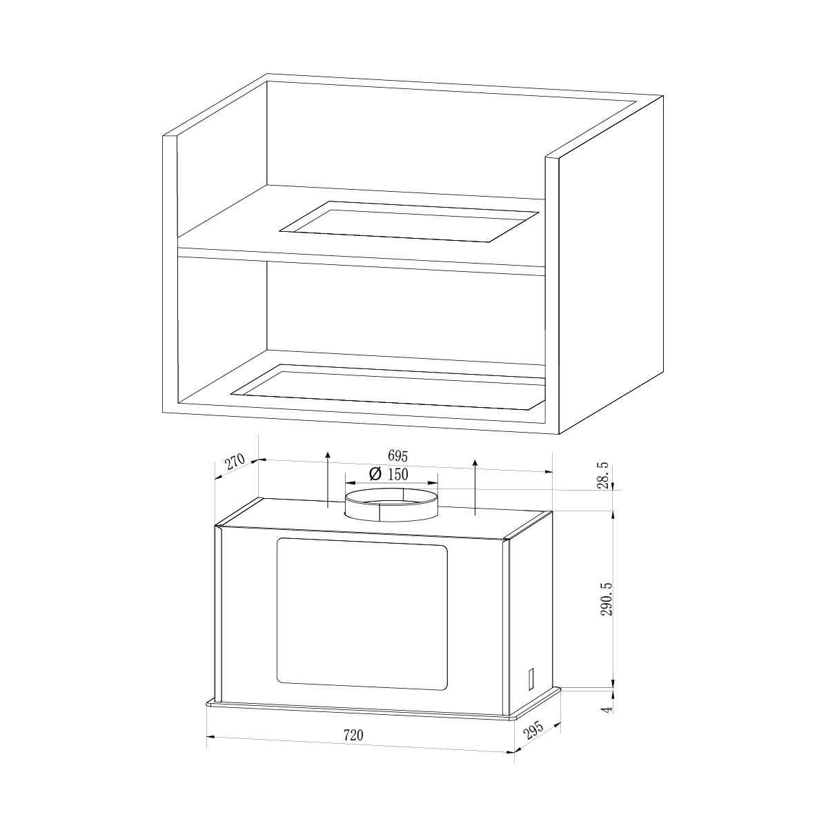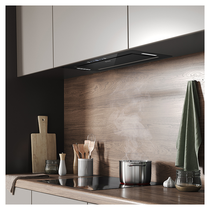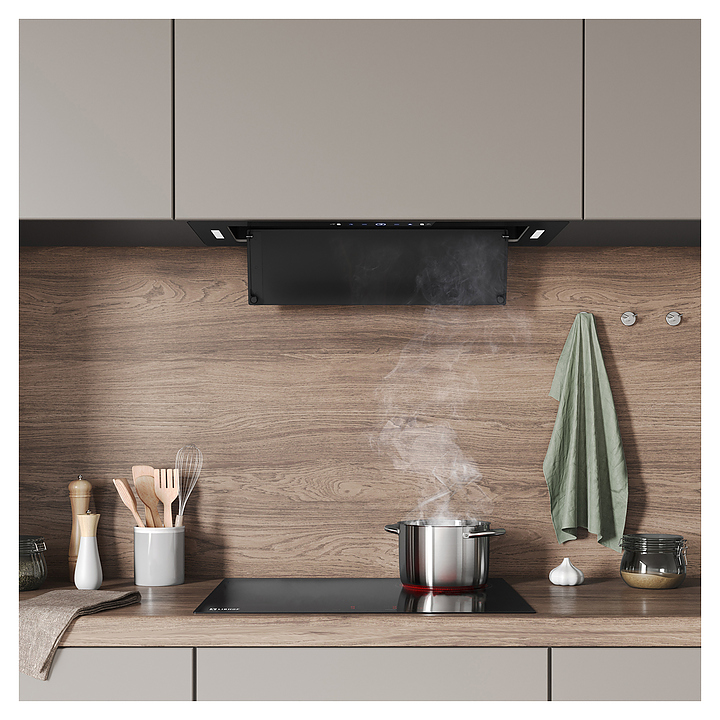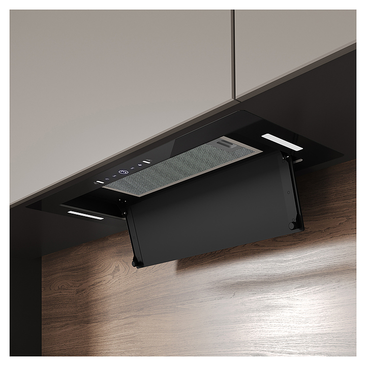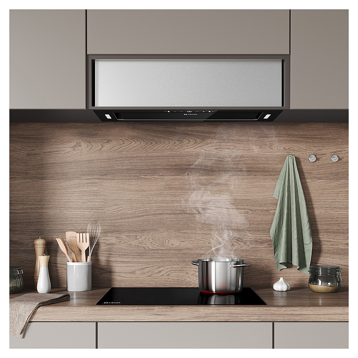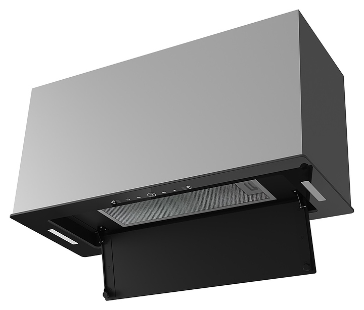 Встраиваемая кухонная вытяжка Libhof LB-0672 black предназначена для очистки воздуха от продуктов горения, копоти и запахов в процессе приготовления пищи путем принудительной вентиляции в домашних условиях. Модель оснащена вентилятором с электродвигателем, откидной крышкой, 2 прямоугольми светодиодными светильниками, кабелем питания с вилкой, панелью управления с сенсорными клавишами и цифровым дисплеем индикации. Корпус выполнен из высококачественной стали с термостойким покрытием эмалью черного цвета, жироулавливающий фильтр – из алюминия. В комплект поставки входят набор монтажных креплений, 2-лепестковый антивозвратный клапан, шаблон для монтажа, инструкция по эксплуатации, гарантийный талон и заводская упаковка. Особенности: