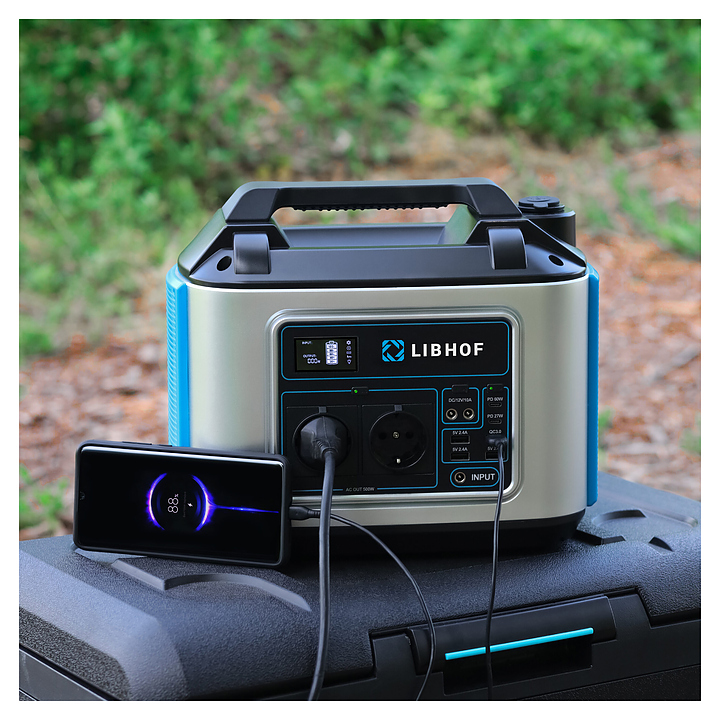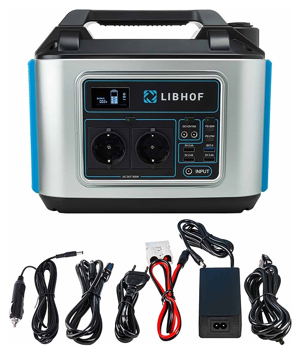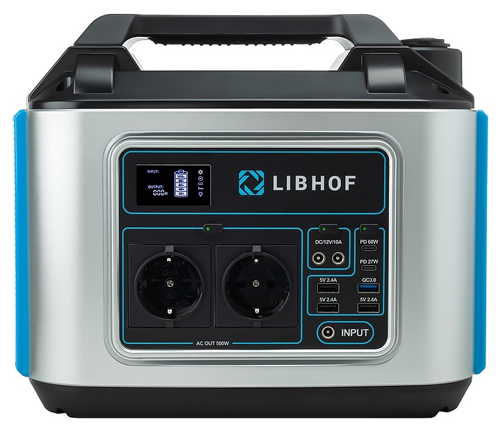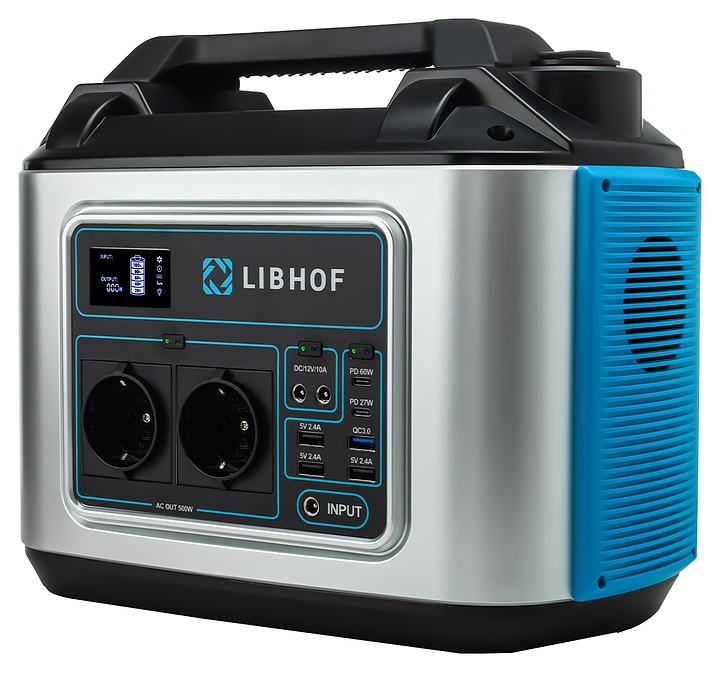 Портативная зарядная станция Libhof PPS-500 используется для зарядки смартфонов, планшетов, ноутбуков, фотоаппаратов и других работающих на аккумуляторных батареях приборов в быту, во время деловых поездок, туристических походов, пикника, рыбалки или дорожных путешествий. Модель оcнащена высококачественной литий-ионной (Lilon) аккумуляторной батареей (АКБ), функциональными выходами (разъемами) различных типов и информативным жидкокристаллическим дисплеем с символьными, графическими и цифровыми сегментами индикации. Корпус выполнен из ударопрочного пластика в гармоничной цветовой комбинации черного, серебристого и морского зеленого тонов. Комплектация: