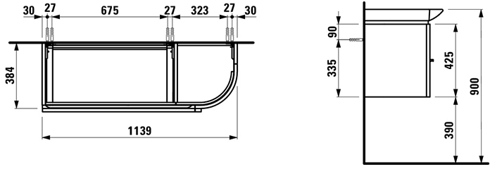 Тумба используется вместе с раковиной Laufen Palace 8.1670.5.000.104.1.