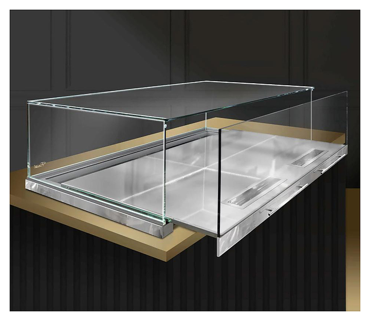 Встраиваемая горизонтальная витрина Finist Glassier SLIDE GS-10/55/3 предназначена для кратковременного хранения и предпродажной демонстрации десертов и кондитерских изделий на предприятиях общественного питания и торговли. Модель оснащена компрессором, регулируемой светодиодной подсветкой и может монтироваться в столешницу из любого материала. Выдвижной поддон позволяет с лёгкостью доставать выбранные блюда без риска повреждения стоящих по соседству. Купол витрины имеет большую площадь остекления, что помогает беспрепятственно разглядеть товар со всех сторон. Корпус выполнен из высококачественной зеркальной нержавеющей стали, купол – из стекла, агрегатная часть - из крашеной стали. Особенности: