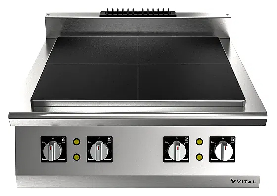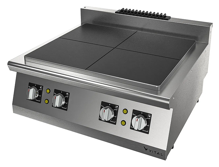 Электрическая плита VITAL PRO-EST7020 серии 700 предназначена для приготовления различных блюд из мяса, птицы, рыбы и овощей в наплитной посуде на предприятиях общественного питания и торговли. Модель оснащена 4 конфорками с независимым управлением и прессованной монолитной столешницей. Закругленные края столешницы обеспечивают легкую чистку. Корпус выполнен из нержавеющей стали, конфорки - из сплава Incoloy 800, который отличается прочностью, долговечностью, устойчивостью к высоким температурам, известковой коррозии и воздействию химикатов.