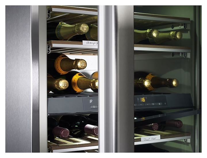 В виннотеке KWT 4974 SG ed специалисты компании Miele продумали все до мелочей. Аппарат разделен на три независимые зоны. Каждая зона имеет своё освещение, систему угольной фильтрации и индивидуальную регулировку температуры хранения вина: от +3°C до +20°C. Светодиодная подсветка, расположенная на одном уровне с бутылками, дает оптимальное освещение. Светодиодные лампы практически неограниченного срока службы, не требуют технического обслуживания.